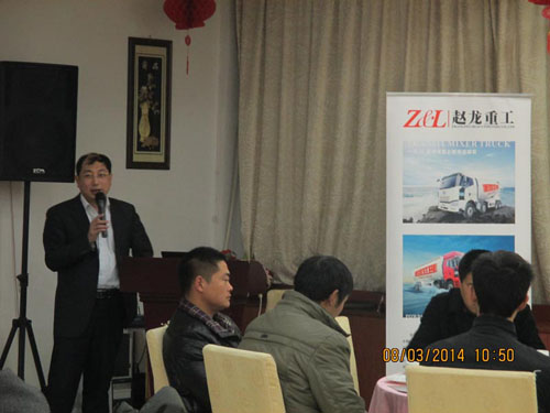 會議第二項(xiàng)是由我司總經(jīng)理斯之清發(fā)表講話。斯總強(qiáng)調(diào),江蘇市場是我司在華東地區(qū)重點(diǎn)推廣的核心區(qū)域,我司特別看重此區(qū)域客戶的感受。斯總承諾將聯(lián)合一汽解放,竭盡所能為客戶提供質(zhì)量可靠、性價比較高的國四混凝土攪拌運(yùn)輸車。
