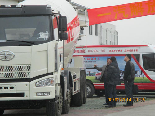 2014年3月8日,在美麗富饒的園林城市蘇州,浙江趙龍重工有限公司聯(lián)合一汽解放召開了首次“一汽解放·趙龍重工國四混凝土攪拌車推介會”。此次會議邀請到了太倉地區(qū)各個攪拌站負(fù)責(zé)人以及周邊地區(qū)的行業(yè)用戶共計40余人。